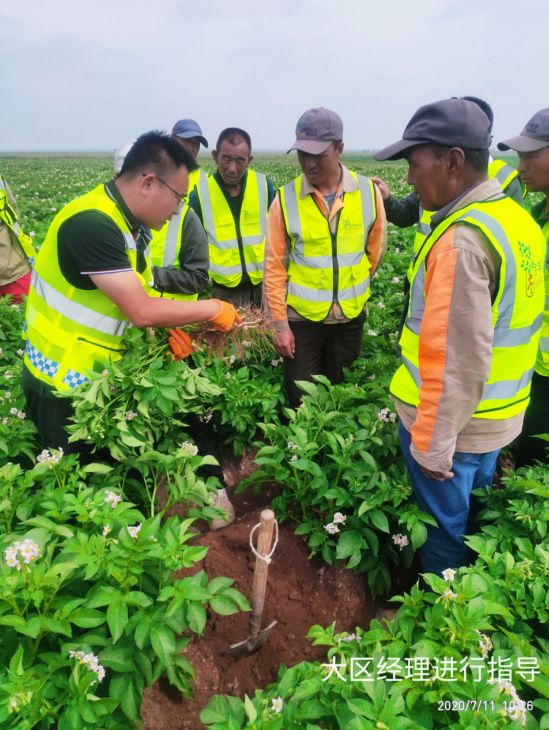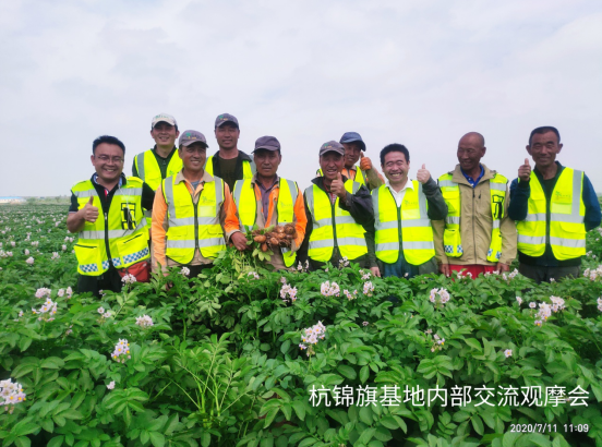 (通訊員 宋江江)2020年7月11日,民豐種業(yè)杭錦旗農(nóng)場(chǎng)組織開(kāi)展內(nèi)部觀摩交流活動(dòng)?;顒?dòng)由大區(qū)經(jīng)理、農(nóng)藝師、管理員、基地經(jīng)理、機(jī)手等13人參加,在大區(qū)經(jīng)理門大偉的帶領(lǐng)下大家對(duì)各地塊馬鈴薯問(wèn)題進(jìn)行的探討、研究,針對(duì)各基地問(wèn)題做到早發(fā)現(xiàn),早溝通,早預(yù)防,就重大問(wèn)題進(jìn)行立項(xiàng)研討并提出改進(jìn)方案及措施。同時(shí),對(duì)管理成就突出的地塊進(jìn)行現(xiàn)場(chǎng)學(xué)習(xí),共享田間管理方面、經(jīng)驗(yàn)及做法。