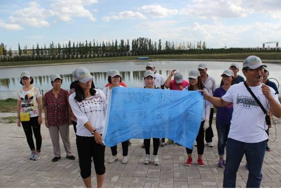本次擴展訓練分別從德、智、體、美、勞五項趣味進行了才藝大比拼。三組人員分別進入各自的營地,將隊名、口號、隊歌寫在旗幟上規(guī)定時間內(nèi)展示給大家。令所有人都大跌眼鏡的是三組隊員的隊名如出一轍,完全一樣,他們都是—《戰(zhàn)狼隊》。隨后,戰(zhàn)狼三個隊展開了“肺活量大比拼”、“瞎子”背“瘸子”、“智能撲克傳遞”、“毛毛蟲速爬”、“燒烤比賽”等多個賽事。
