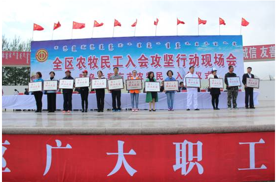 6月14日,全區(qū)農(nóng)牧民工入會(huì)攻堅(jiān)行動(dòng)現(xiàn)場(chǎng)會(huì)暨烏蘭察布市農(nóng)牧民工入會(huì)儀式在我市舉行。我公司組織30人的方隊(duì)參加了入會(huì)儀式。期間,自治區(qū)人大常委會(huì)副主任、總工會(huì)主席杭桂林,自治區(qū)總工會(huì)黨組書記、副主席崔明龍,自治區(qū)總工會(huì)副主席王麗紅,我市領(lǐng)導(dǎo)張琛、李建平、楊國(guó)文、王增強(qiáng)、王國(guó)相、于生龍,和各盟市工會(huì)分管主席、主管部門部長(zhǎng),各盟市黨委政府所在地的區(qū)(市、旗)總工會(huì)主席,各自治區(qū)產(chǎn)業(yè)工會(huì)負(fù)責(zé)人,自治區(qū)直屬機(jī)關(guān)工會(huì)工委負(fù)責(zé)人,區(qū)總相關(guān)部門負(fù)責(zé)人,市各旗縣市區(qū)工會(huì)負(fù)責(zé)人及部分市直基層工會(huì)負(fù)責(zé)人100余人來我公司進(jìn)行了實(shí)地觀摩考察。